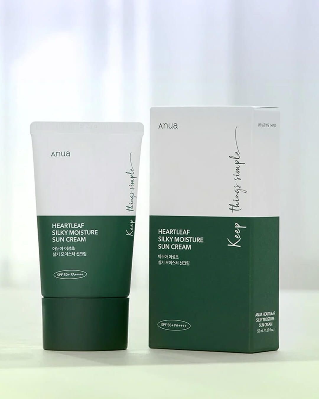 Anua Heartleaf Silky Moisture Sun Cream est une crème solaire qui offre un large spectre de protection solaire avec SPF 50+ PA++++. La particularité de cette crème solaire réside dans sa teneur en extrait d’Houttuynia Cordata (extrait de feuille de cœur), connu pour ses effets anti-inflammatoires et apaisants sur la peau. Ce produit est donc particulièrement adapté aux peaux sensibles.